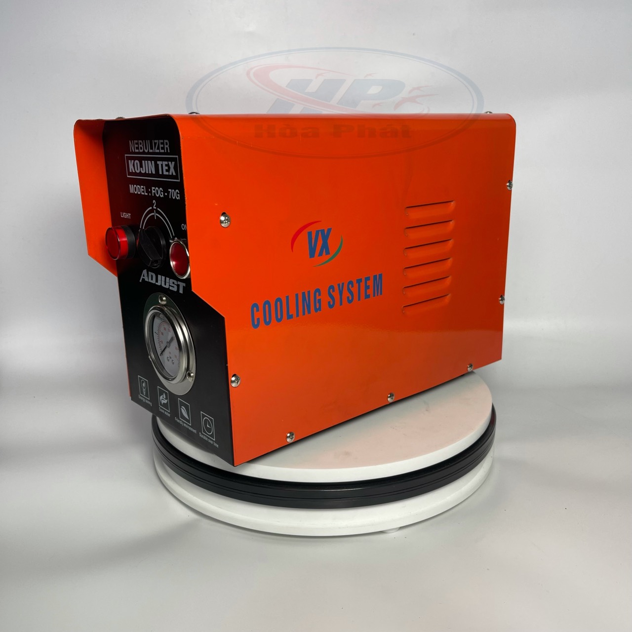 Phun sương hiệu quả: Máy phun sương Kojin Tex Fog 70G có khả năng phun sương liên tục với số lượng péc tối thiểu là 50 và tối đa là 70, giúp tạo ra một màng sương mịn và đồng đều để làm mát không khí.